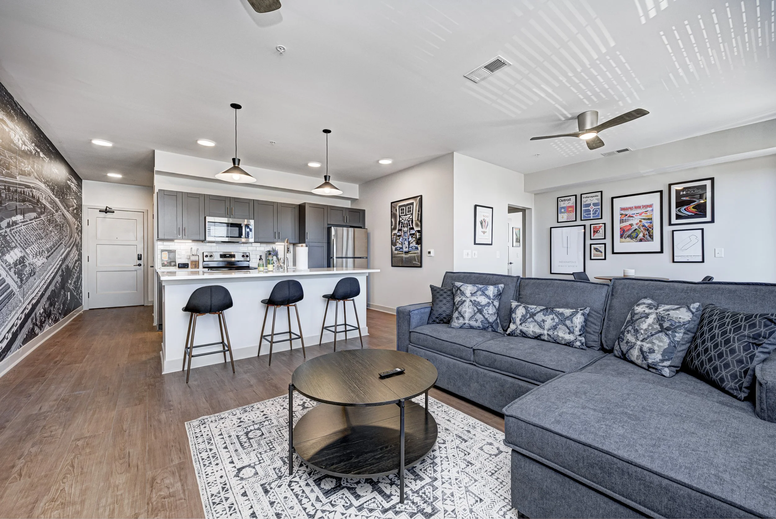 Welcome to our brand new condo right in the middle of main street, Speedway, IN. This corner unit is a large 1 bed / 1 bath condo located on the 2nd floor of the building. There is a beautiful outside deck where you can see the Indianapolis Motor Speedway and great views of Downtown Indy. We’re 3 blocks from the entrance to the Indianapolis Motor Speedway, 1 mile from the Brickyard Public Golf Course, 6 miles from Lucas Oil Stadium and 11 miles from the Indianapolis International Airport.